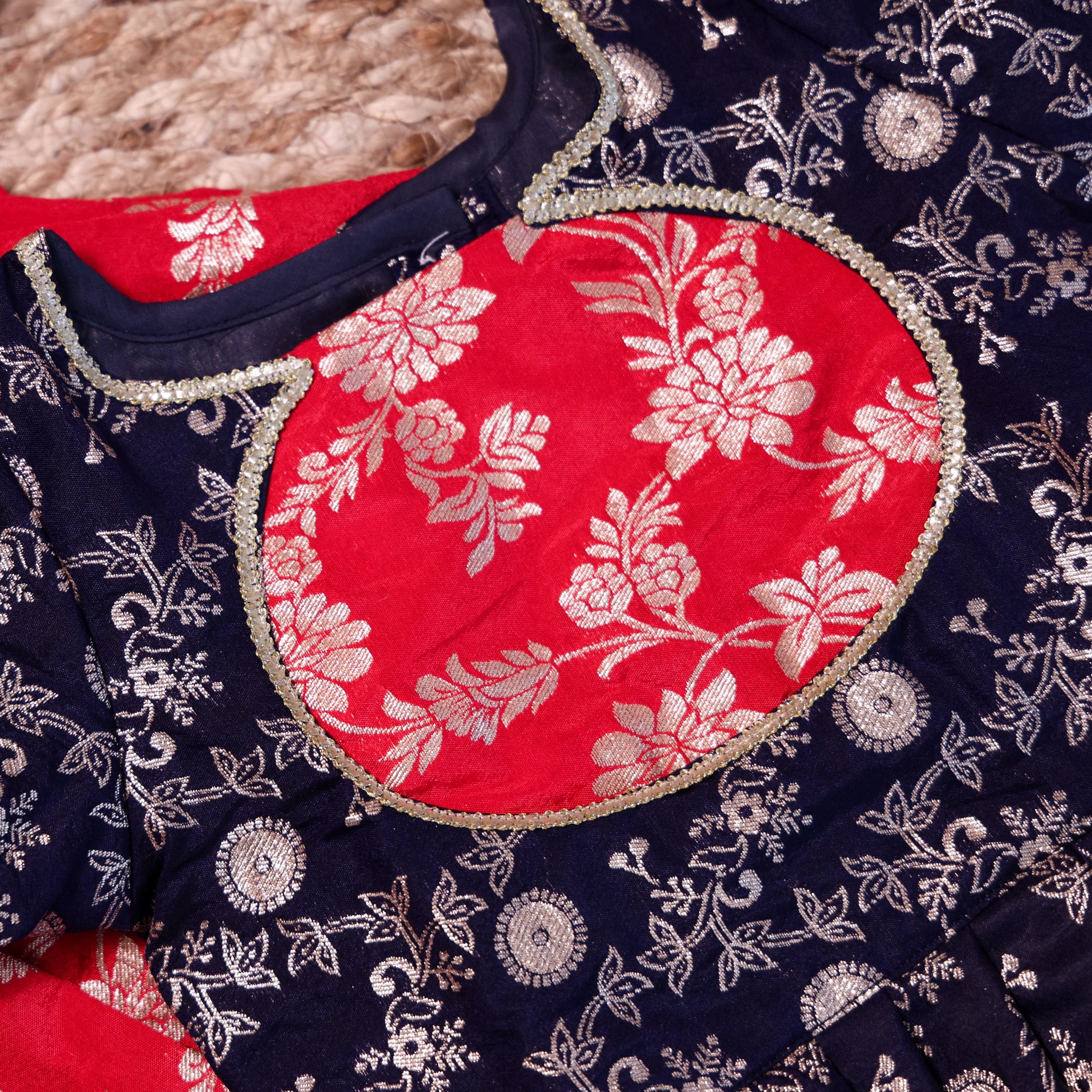 Red & Navy Blue Banarasi Parkar Polka